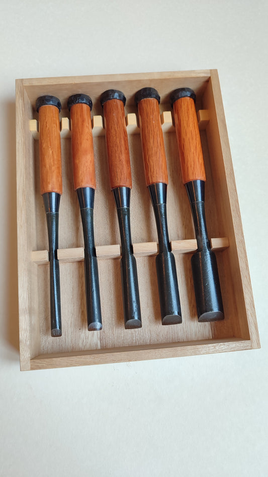 Rare set de gouges japonaises "Uchimaru nomi" 9, 12, 15, 18, 24mm "Etsushin"