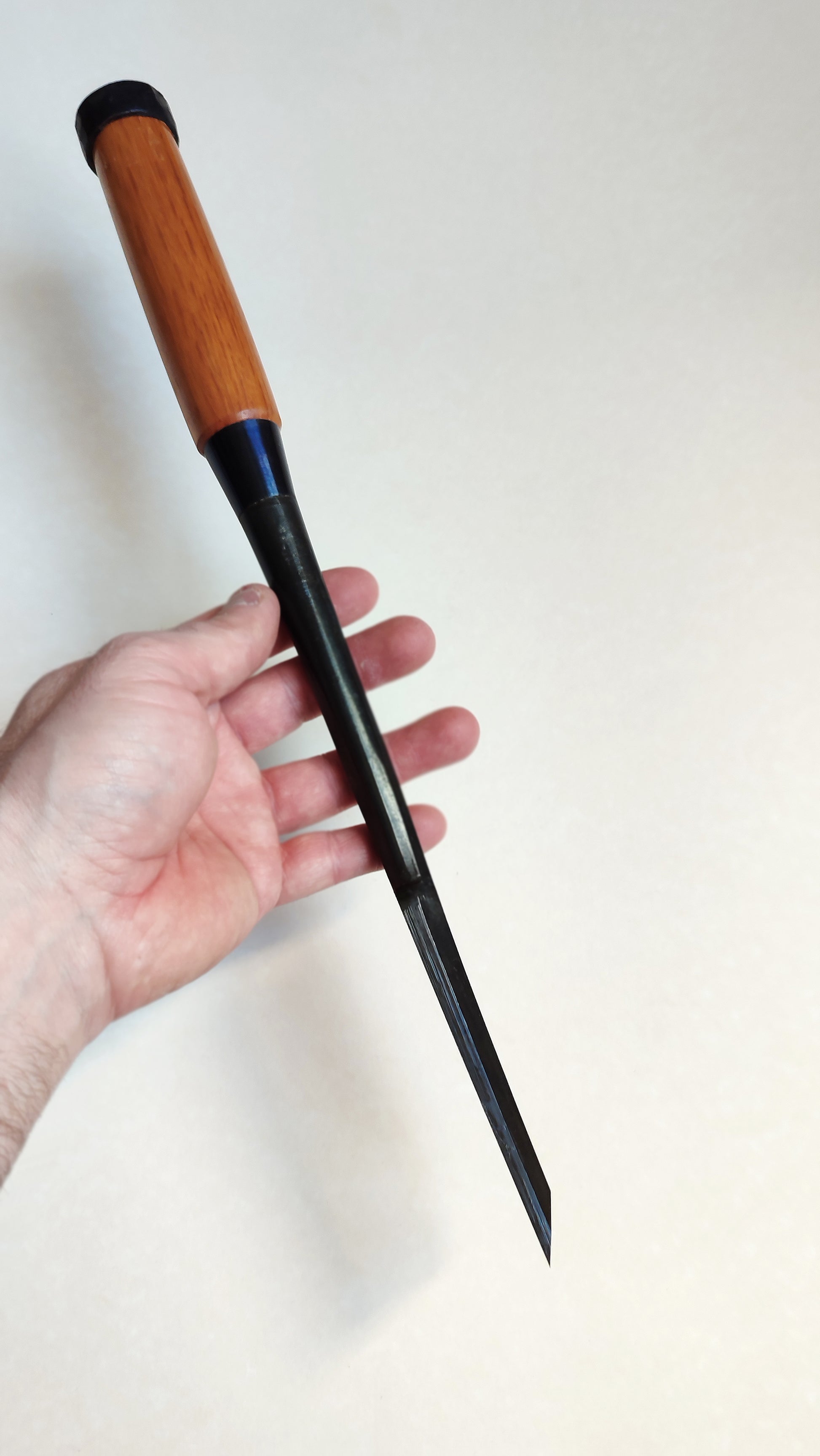 Ce ciseau japonais "Anaya Nomi" a une largeur de 24mm et une longueur totale de 380mm. C'est un outil directement importé du Japon. Il y a la marque fine sur le fer "Umeju". C'est l'un des plus grands ciseaux japonais, son nom "Anaya" provient d'un groupe de charpentier qui se faisaient appeler ainsi et qui étaient principalement employés pour creuser de profonds assemblages.