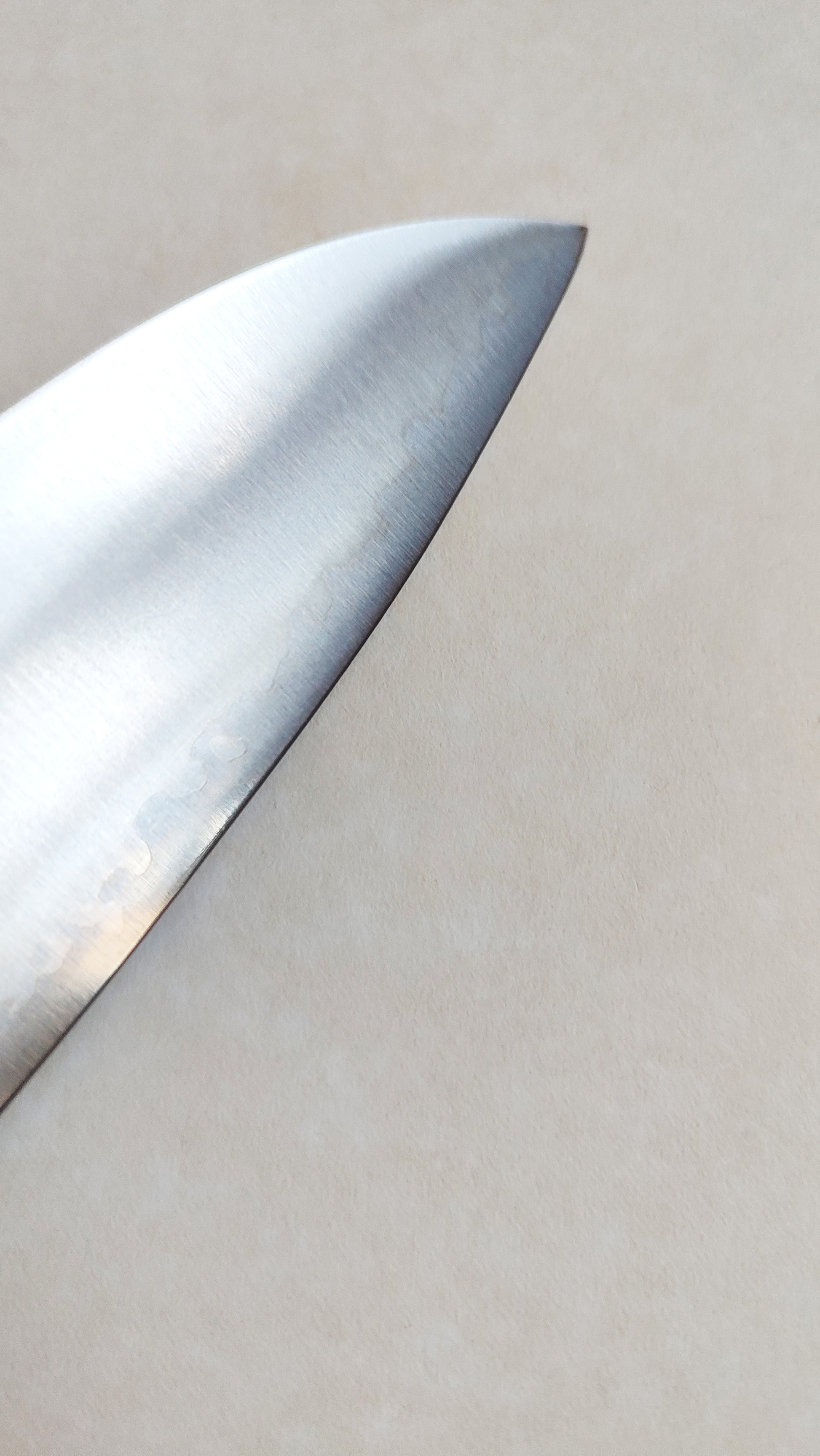 C'est le parfait couteau de cuisine pour la coupe des légumes et pour faire des tranches fines de poisson et ciseler des herbes. Il est à double biseau. Il sera trés facile à affûter.