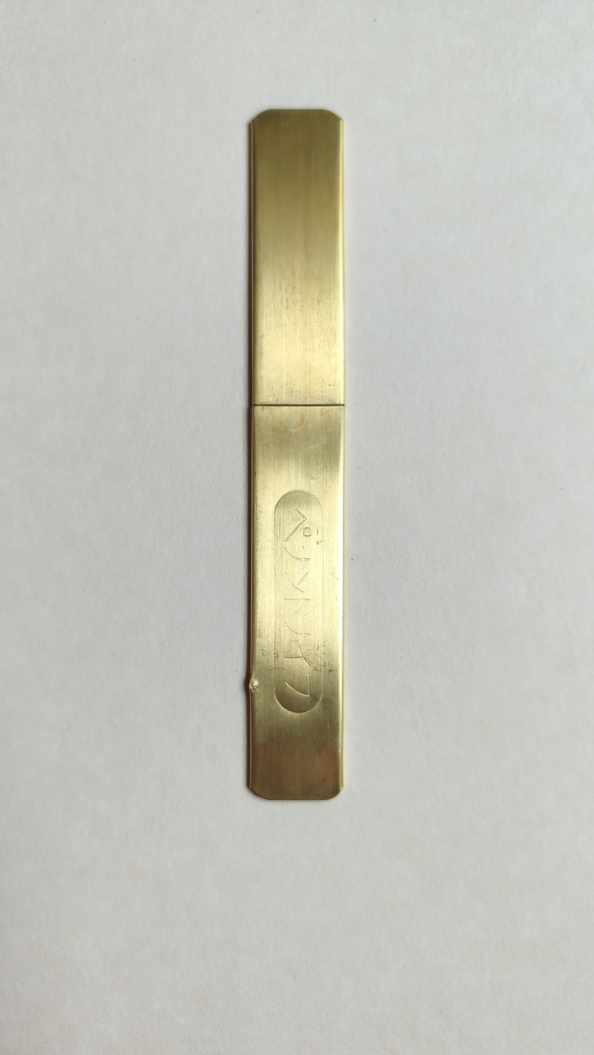 La lame fait 16mm de large et 50mm de long. Le fer est aiguisé et parfaitement tranchant. Le fourreau est en laiton.