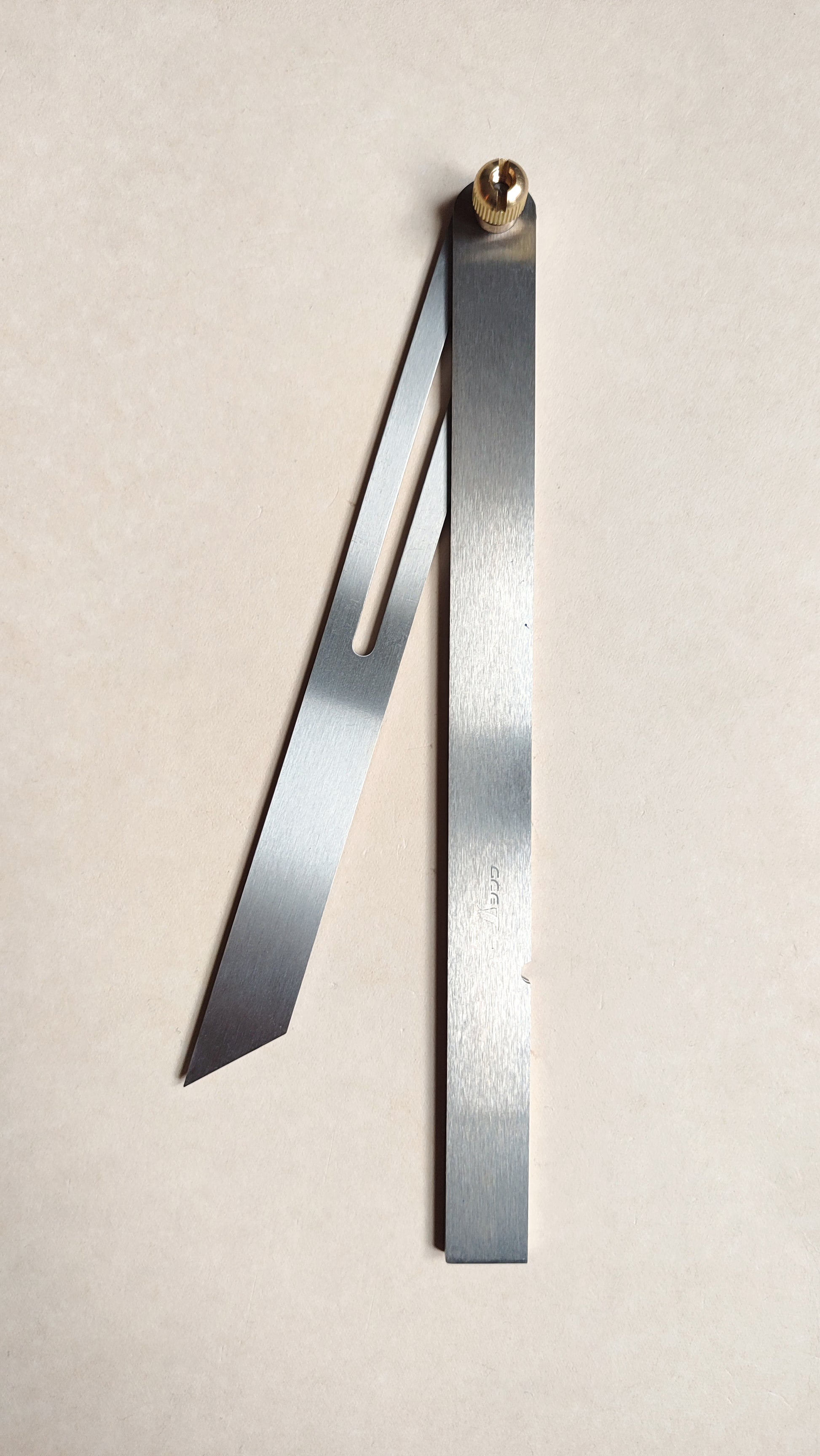 Cette fausse équerre japonaise de la marque Shinwa mesure 250mm de long. Le système de serrage est trés simple. L'équerre se bloque à l'aide d'une petite vis en laiton.