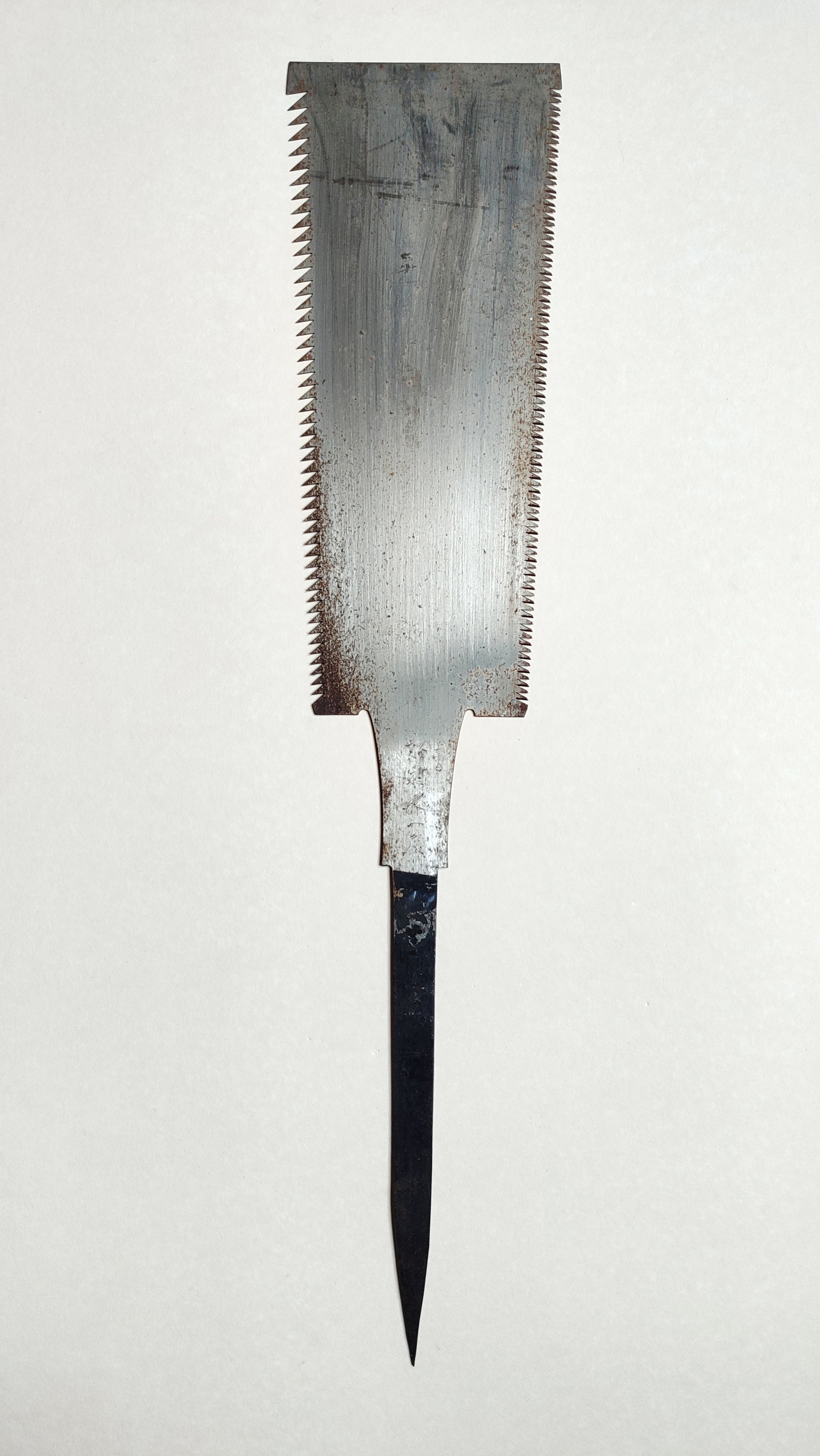 Cette scie forgée main vintage est directement importée du Japon. Elle est neuve et en bon état malgré son oxydation et ses traces de rouille.