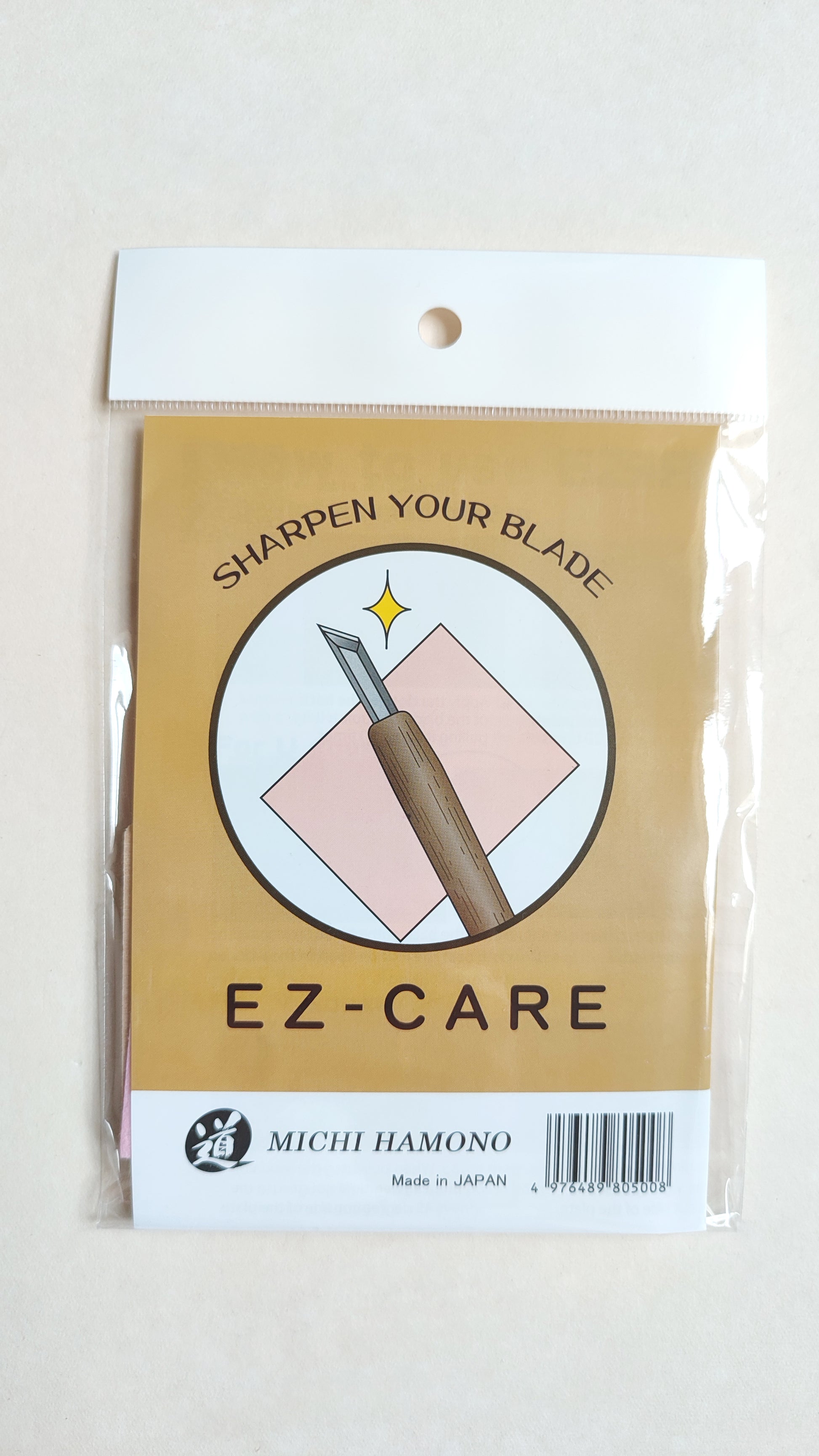 Ce set se compose d'un pad abrasif et d'un bloc de forme en bois pour affûter vos ciseaux à sculpter. Cette solution simple d'affûtage est de la marque "Michi Hamono" spécialisée dans les outils de gravure et de sculpture fabriqué au Japon.