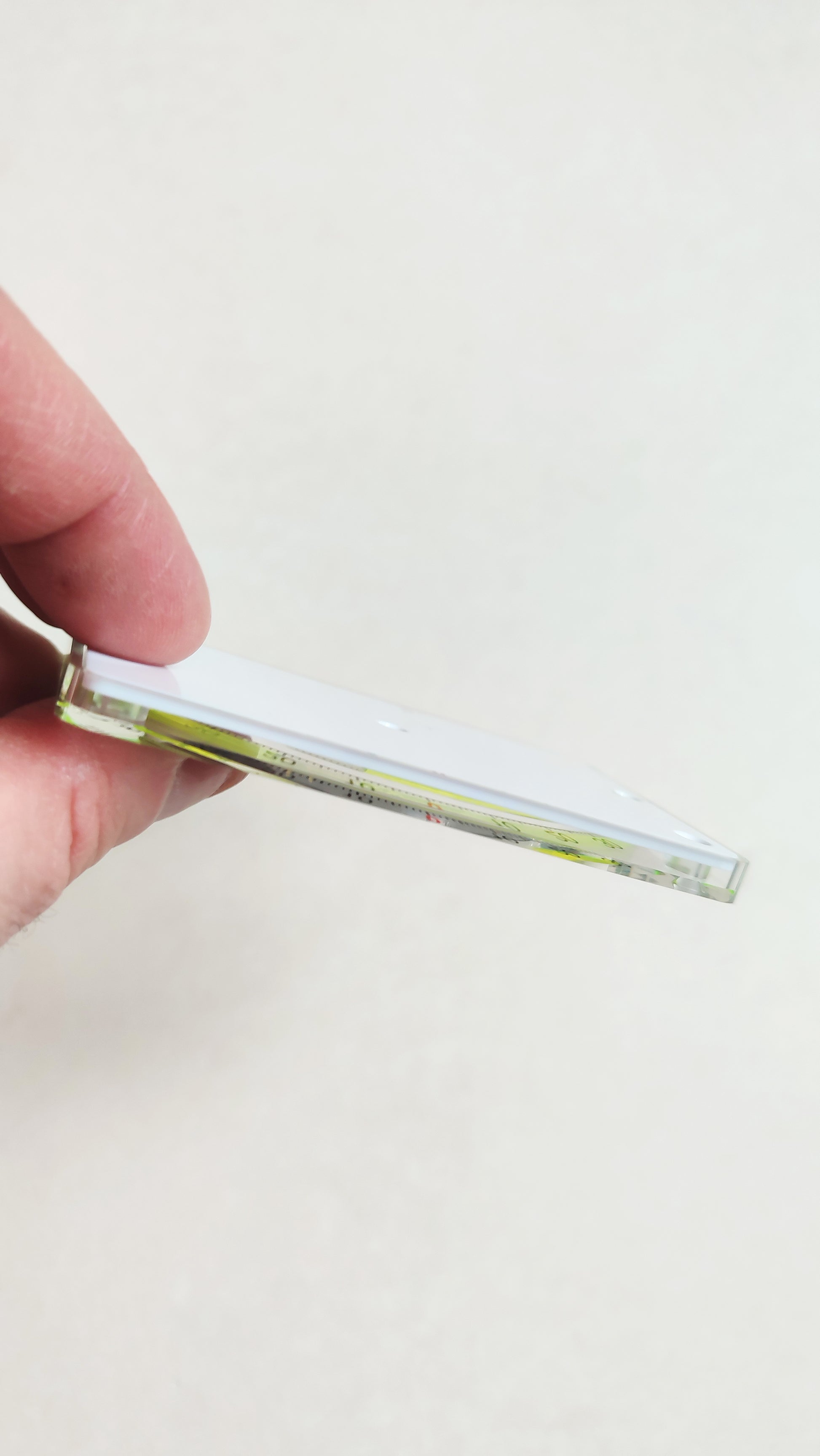 Ce niveau à bulle transparent au format carte de crédit peut se glisser n'importe où. Il est en acrylique crystal et fabriqué au Japon par la marque EbisuDiamond.