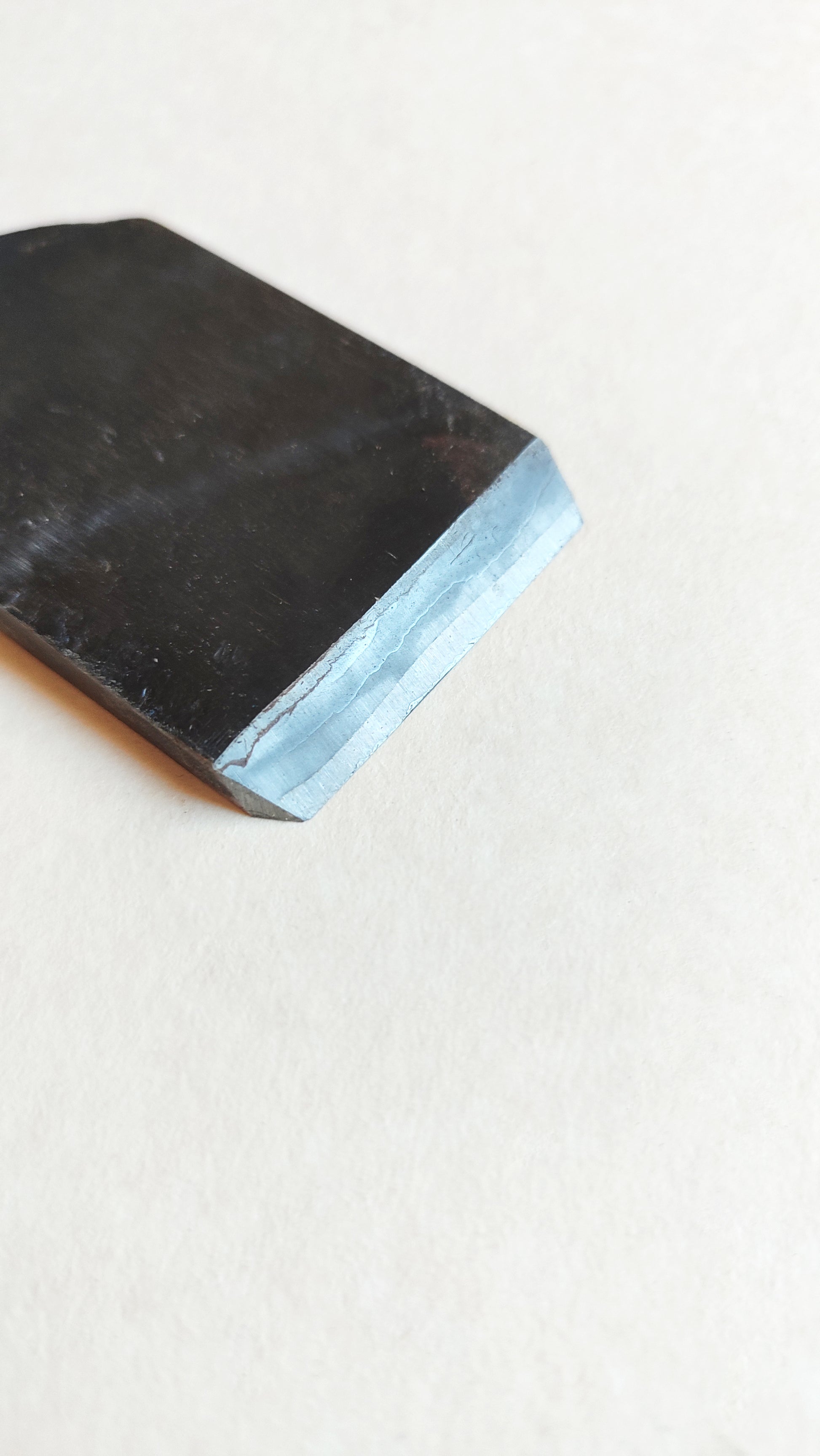 Le fer est en acier forgé hautement carboné bi-couche, il y a la marque poinçonnée sur le fer. Un affûtage est à prévoir 1000-3000. Le daï est en chêne blanc du japon, il est nickel. Il est extrêmement pratique pour aplanir et finir les surfaces.