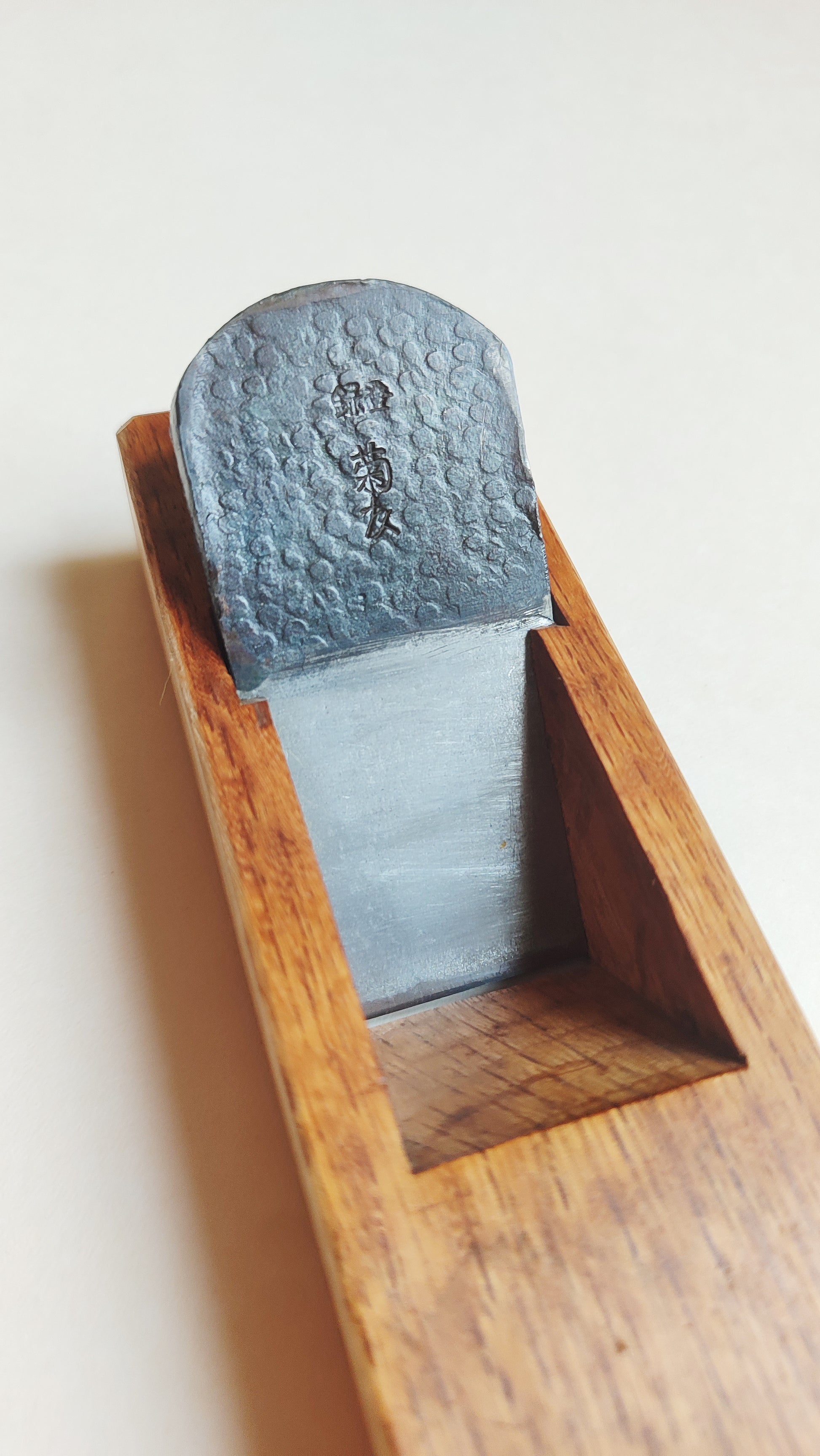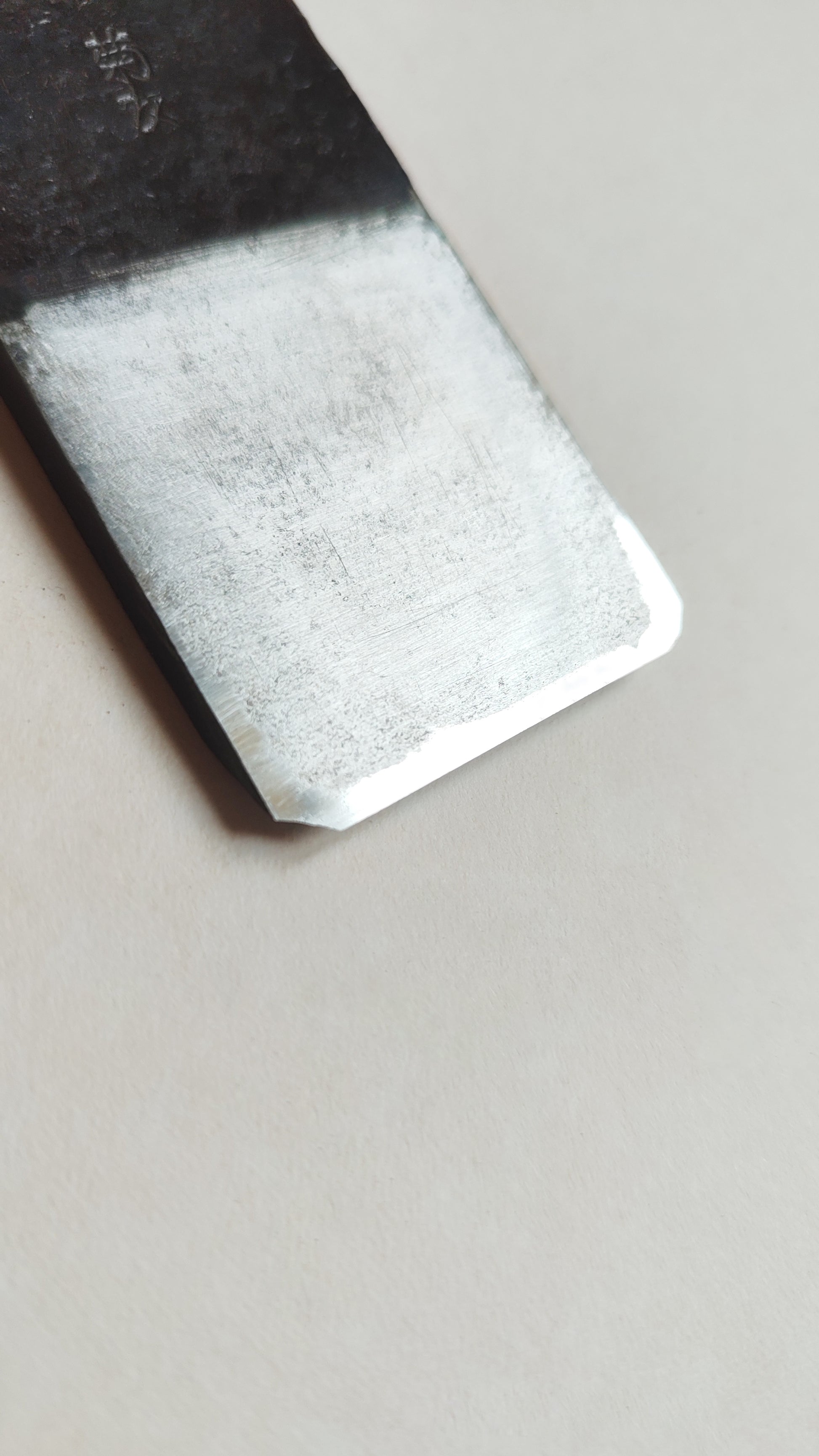 La lame a été finalement peu utilisé et l'Ura dûment restaurée. Le fer est en acier carboné bi-couche forgé main. Le fer a été affûté jusqu'au grain 3000.