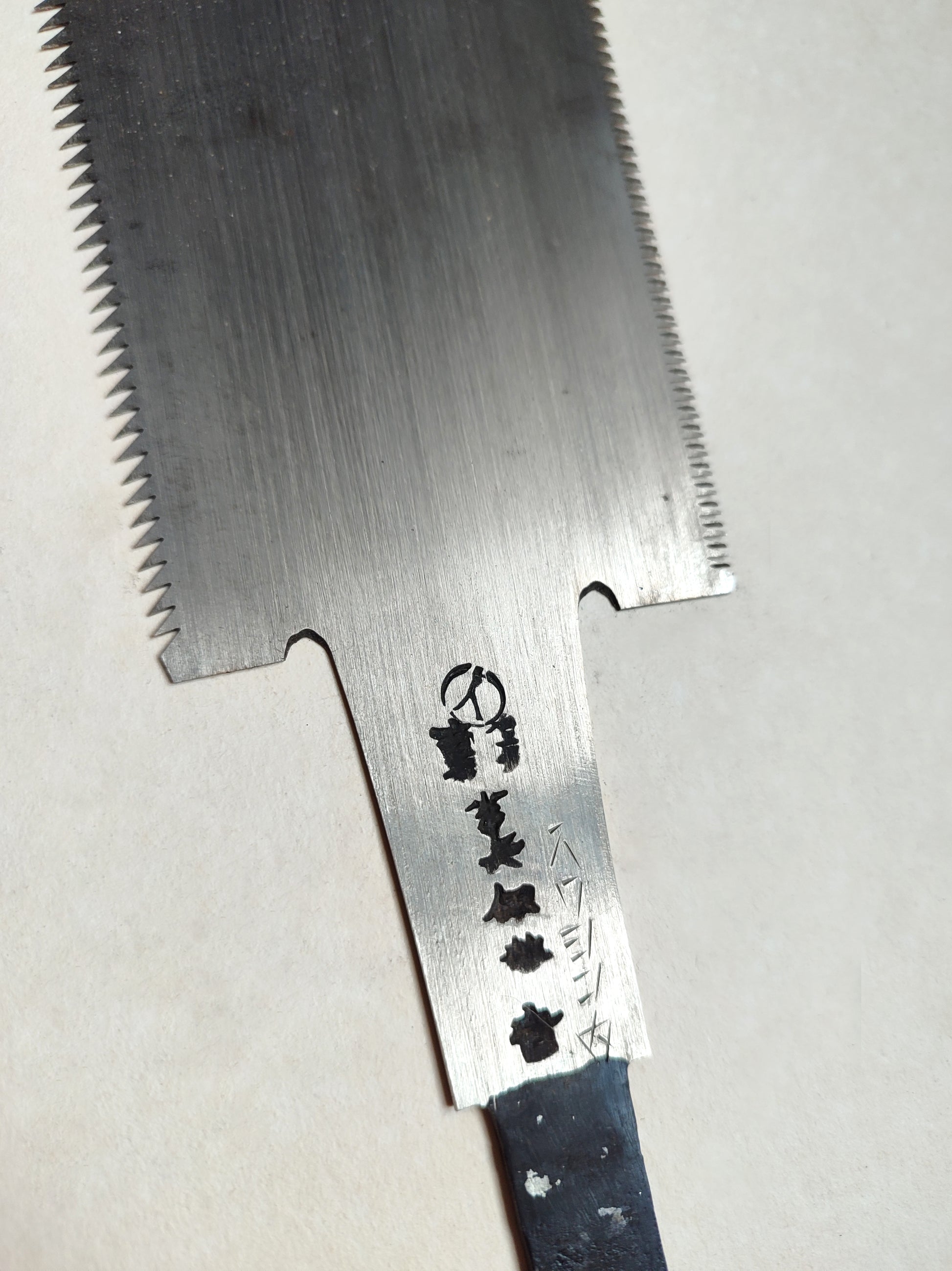 Cette scie forgé est directement importée du Japon. Sa longueur de denture est de 240mm. Elle est vintage et neuve. La scie est forgé main mais ça fabrication laisse penser qu'elle est produite en série. Cette scie est de qualité B.