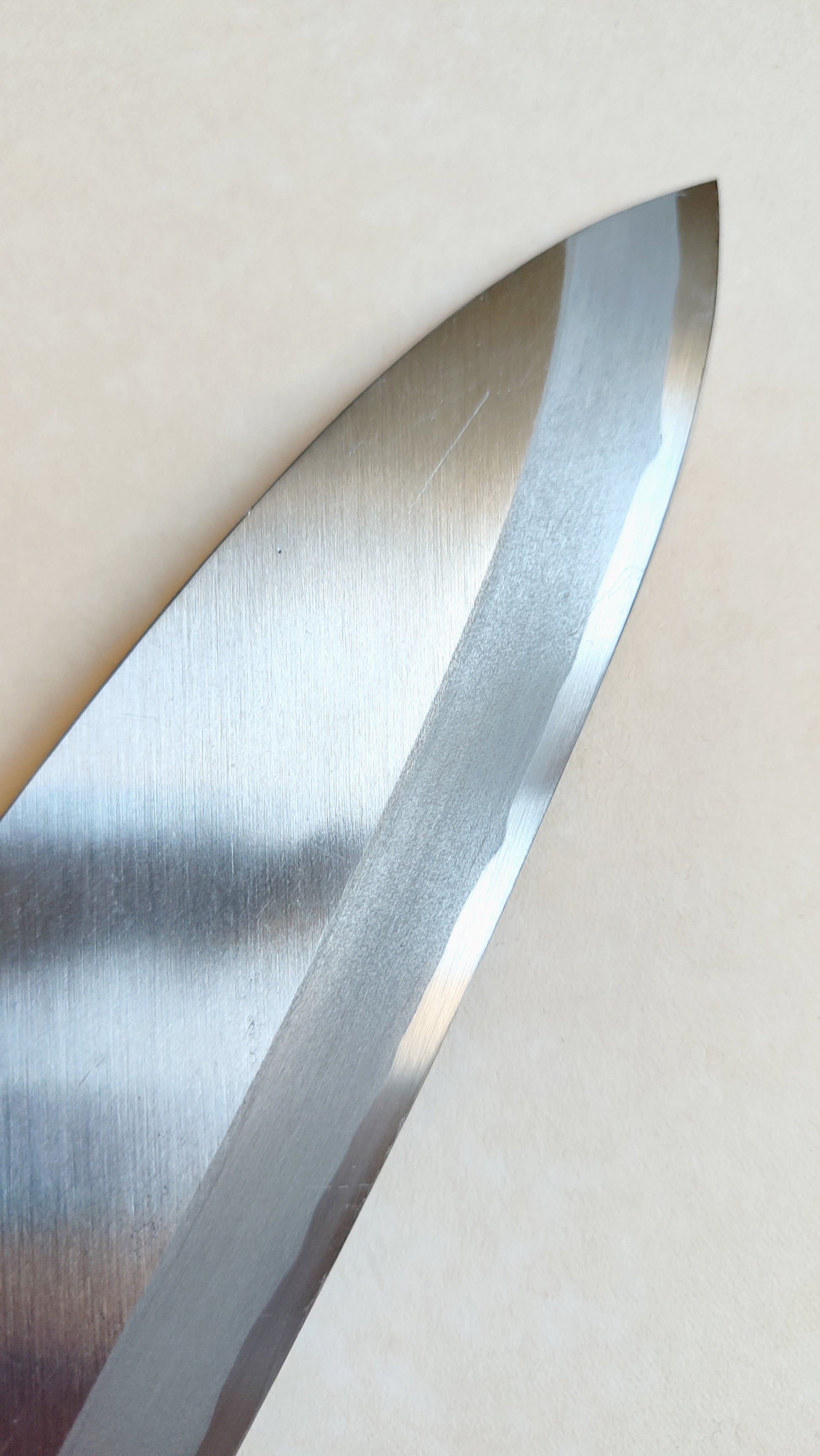 Ce couteau japonais "Ai-Deba" avec une longueur de tranchant de 180mm de long. Son épaisseur est de 6,5mm en milieu de lame. C'est un couteau de ma marque éponyme.