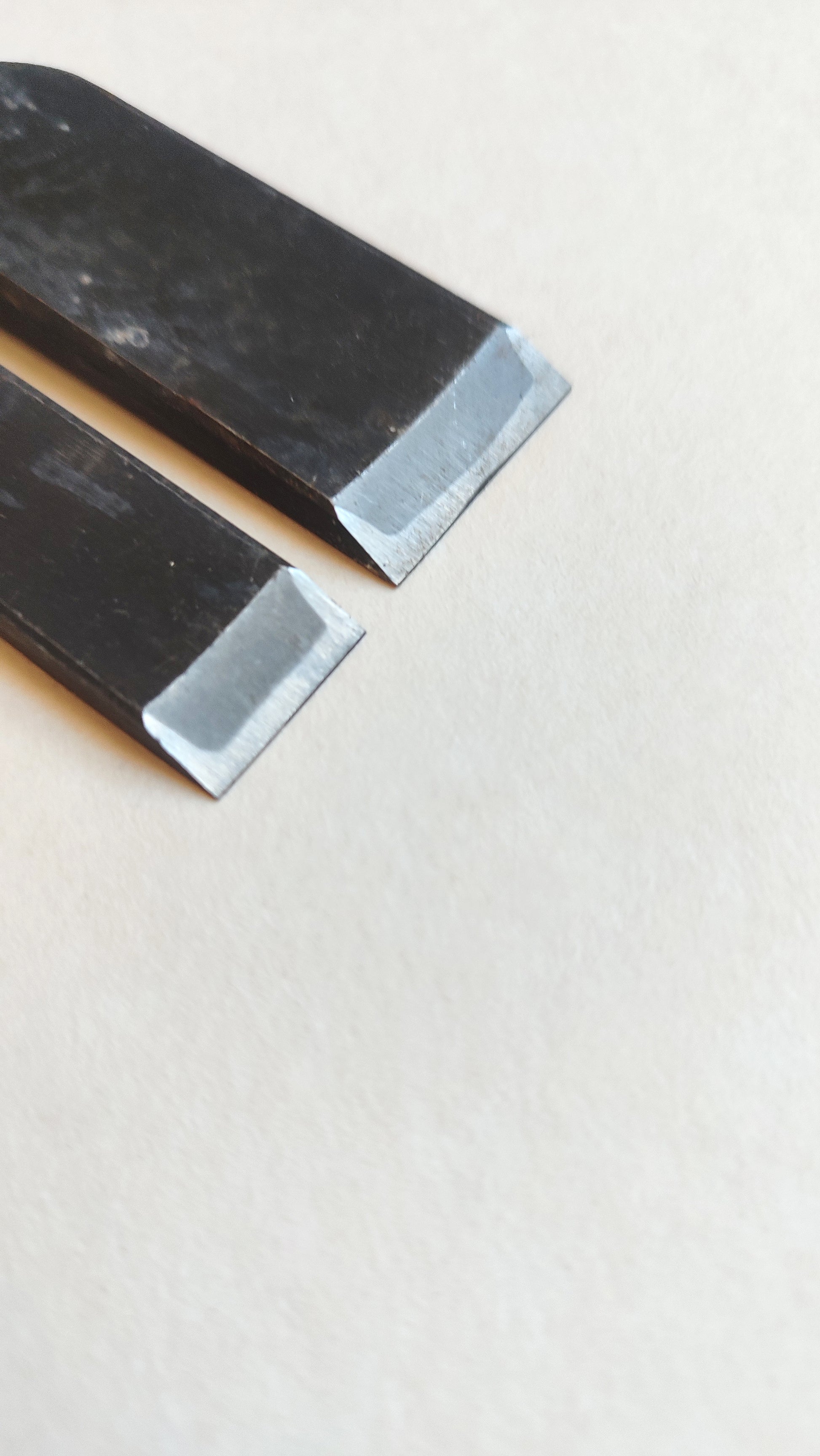 Comme tous les ciseaux neuf un affutage fin est à prévoir, ainsi que le réglage de la virole. Au Japon c'est toujours à l'acquéreur de l'outil de finaliser et d'adapter l'outil à son propre usage, c'est une philosophie de l'outil... Je fournirai tous les conseils pour pouvoir obtenir un réglage. Ces ciseaux de type "Oire Nomi" sont courts. Ils sont très agréables pour les petits travaux d'ébénisterie.