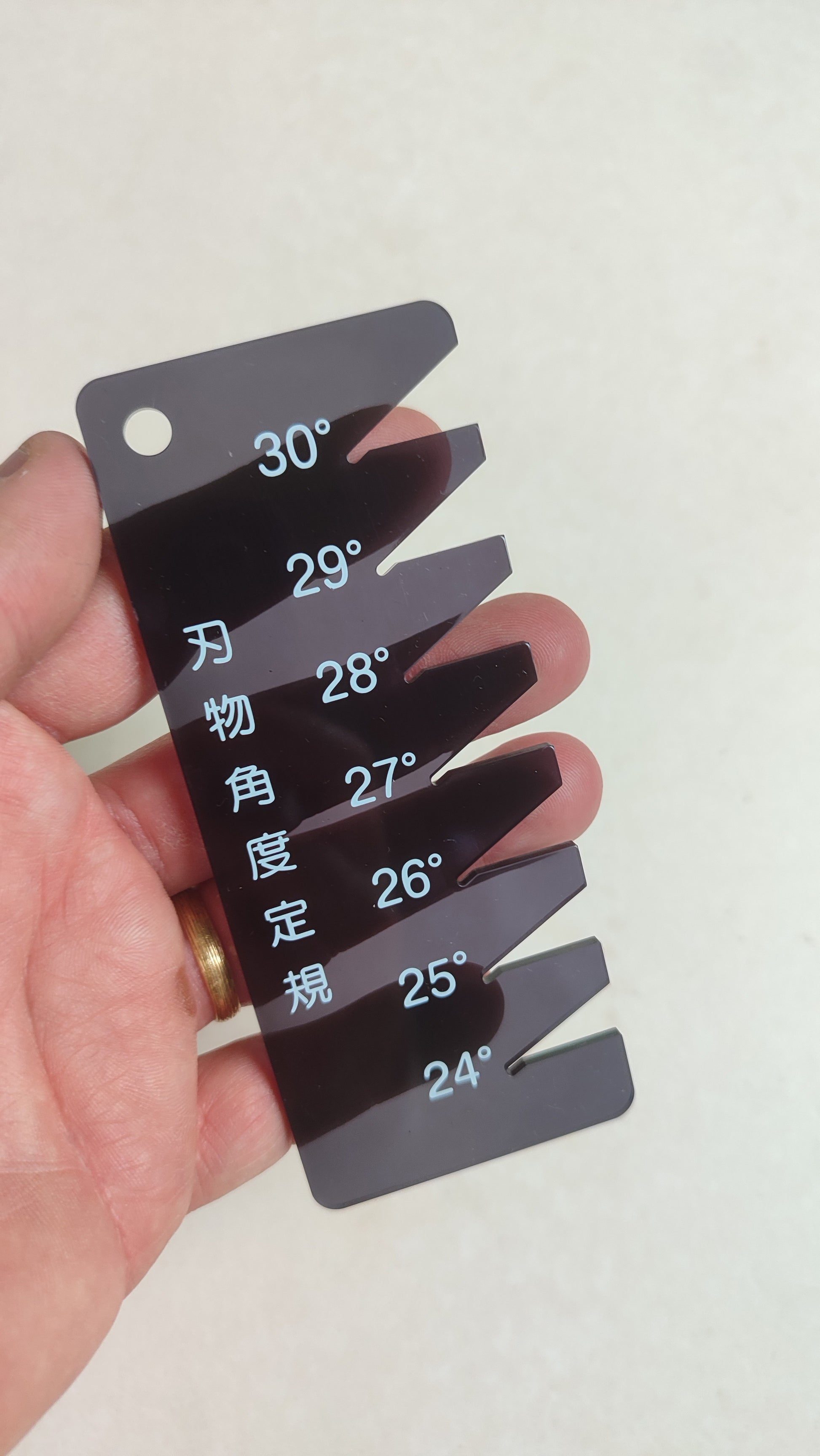 Jauge d'angle de vérification pour vos ciseaux japonais.