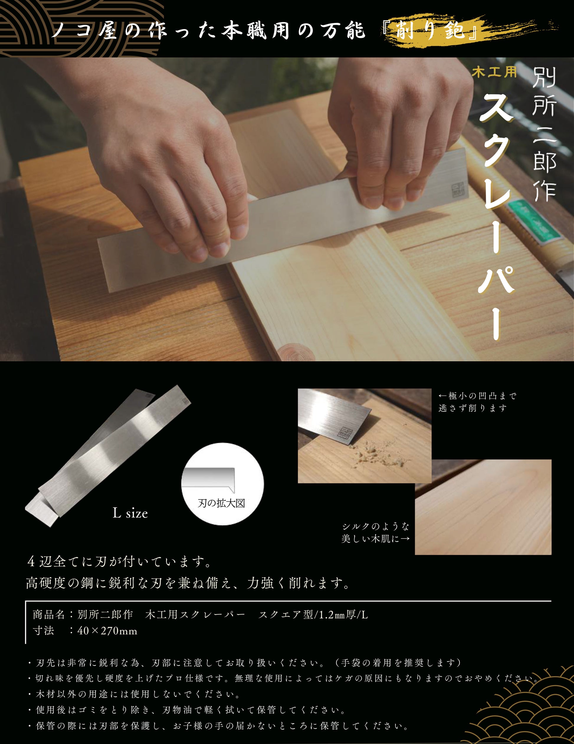 Cet outil est directement importé du Japon. Il mesure 40 X 210mm et fait 1,2mm d'épaisseur. Ce racloir est fabriqué par le célèbre fabricant de scie "Hishika". Ce fabricant est un expert de l'usinage et du traitement traitement des aciers de coupe, c'est donc tout naturellement qu'il a développé une gamme de racloir.
