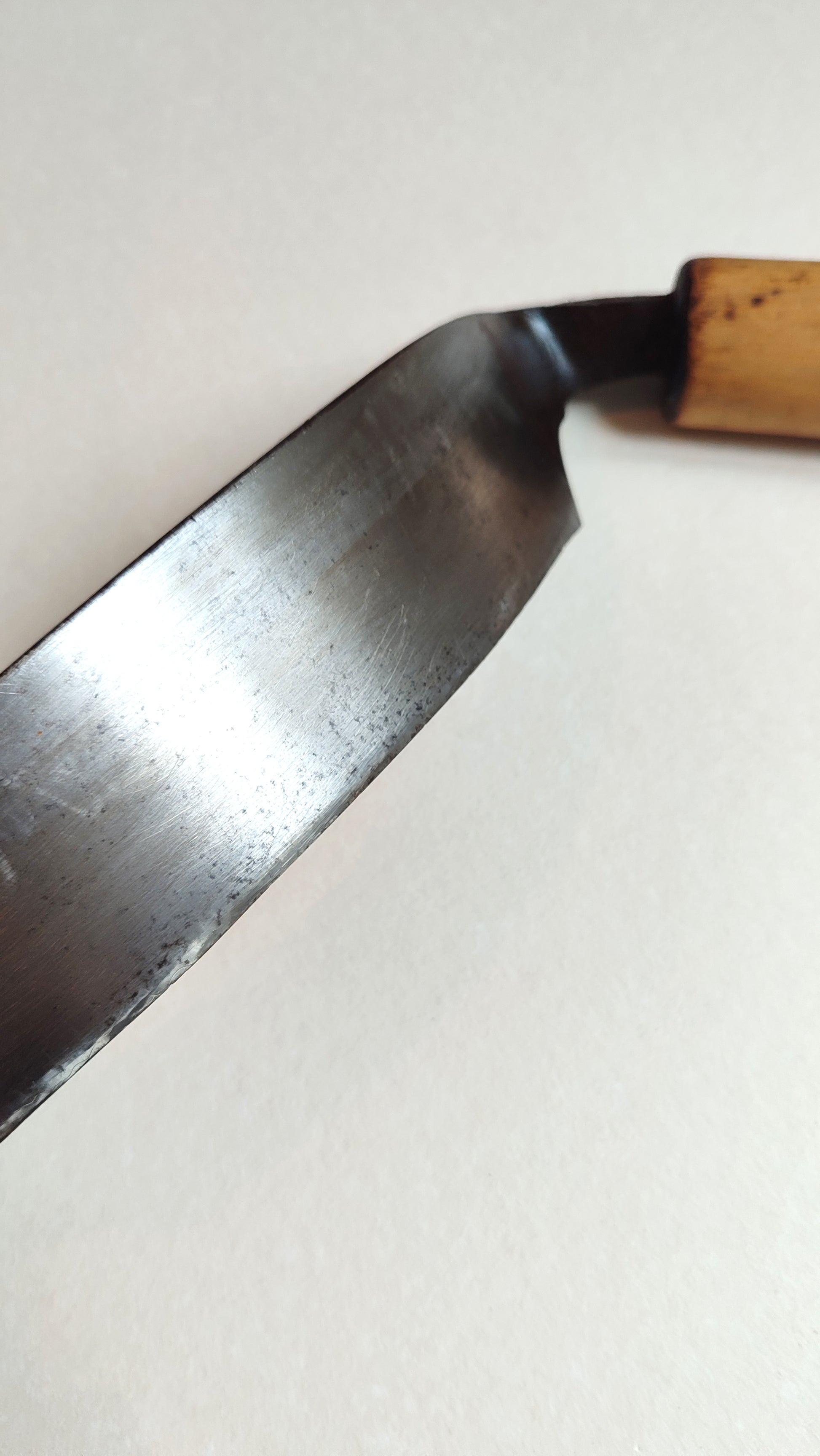 Le fer est en acier hautement carboné bi-couche forgé main. Le biseau du fer nécessitera un affûtage complet (1000-3000).