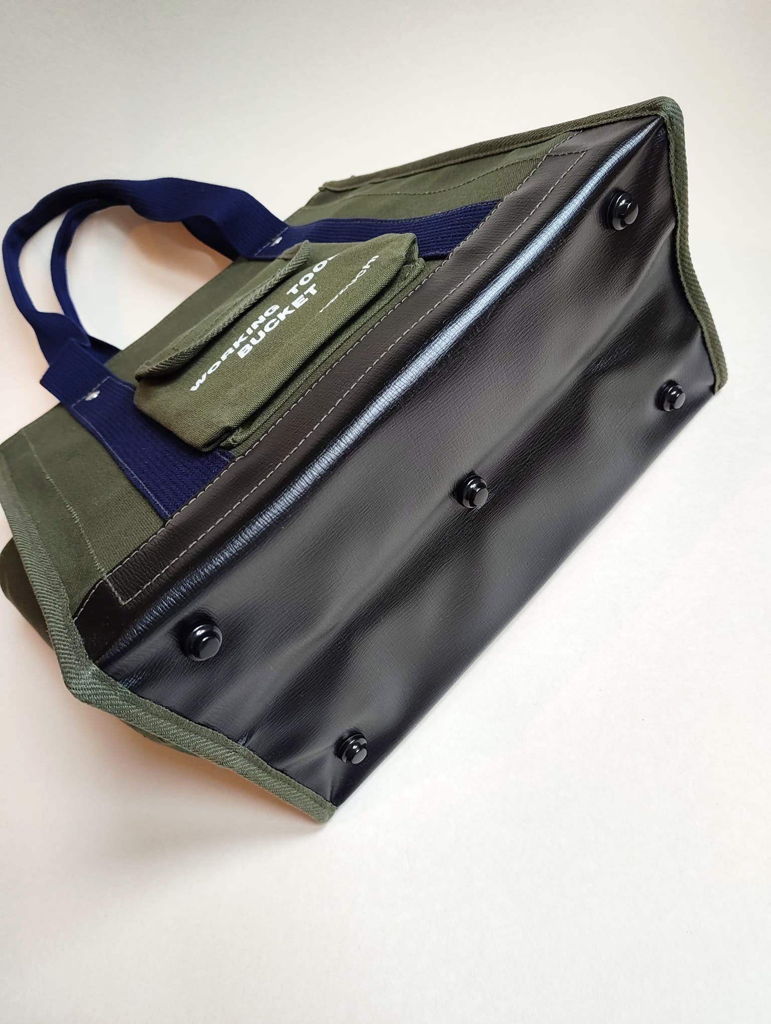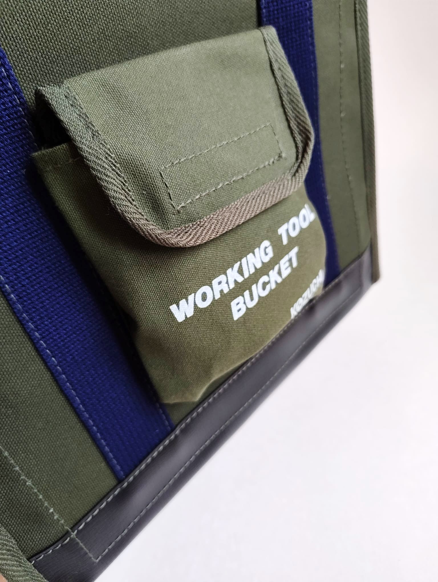 La sangle en coton est vraiment épaisse et confortable. Ce sac est entièrement conçu et fabriqué à la main au Japon par la firme Kozuchi qui est leader dans les accessoires de travail. Elle produit elle même cette toile ultra résistante qui compose le sac. Le fond du sac est renforcé par une lame de plastique en ABS. Toutes les surpiqures sont épaisses et le biais qui recouvre les angles du sac est également trés robuste.