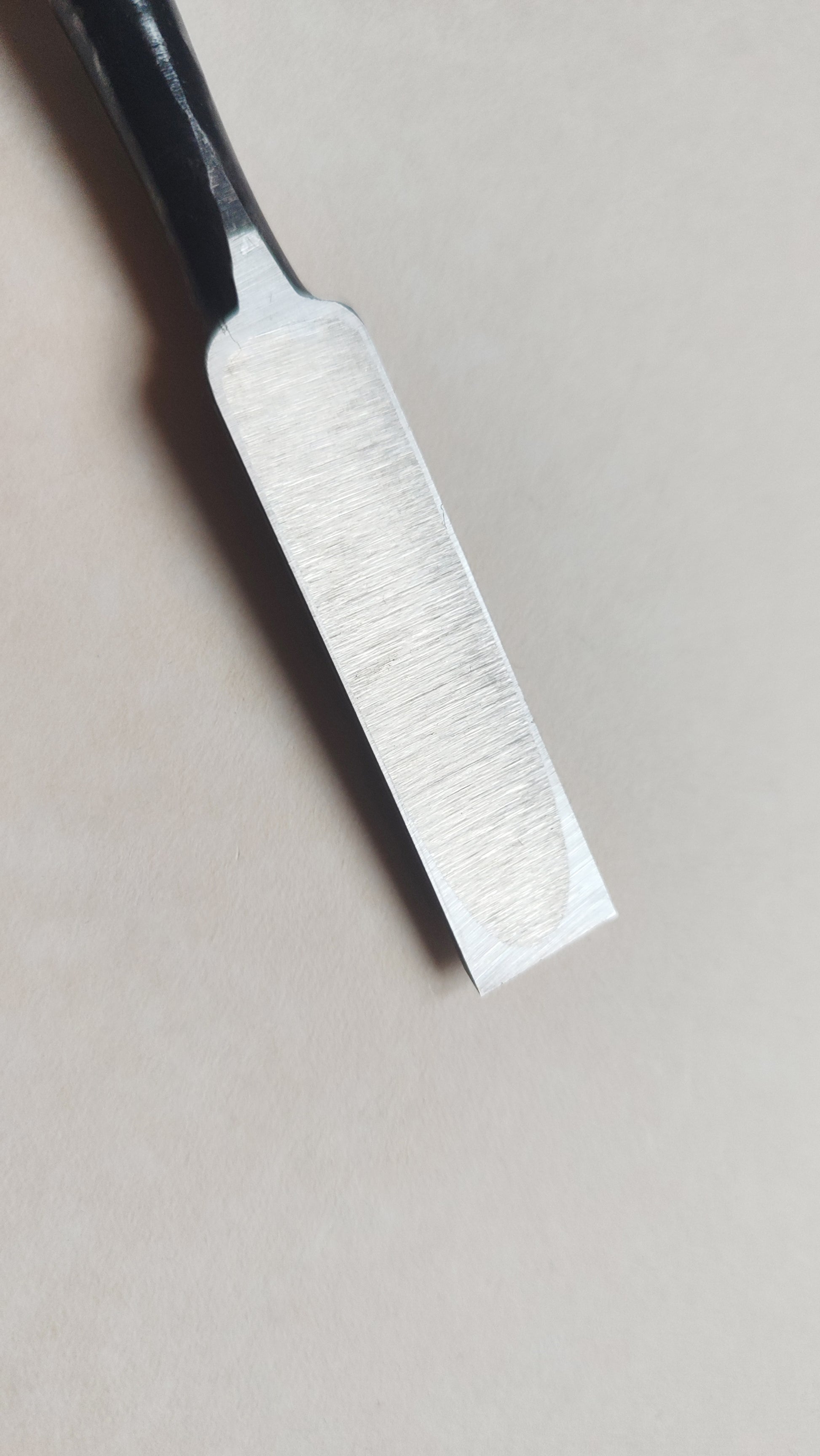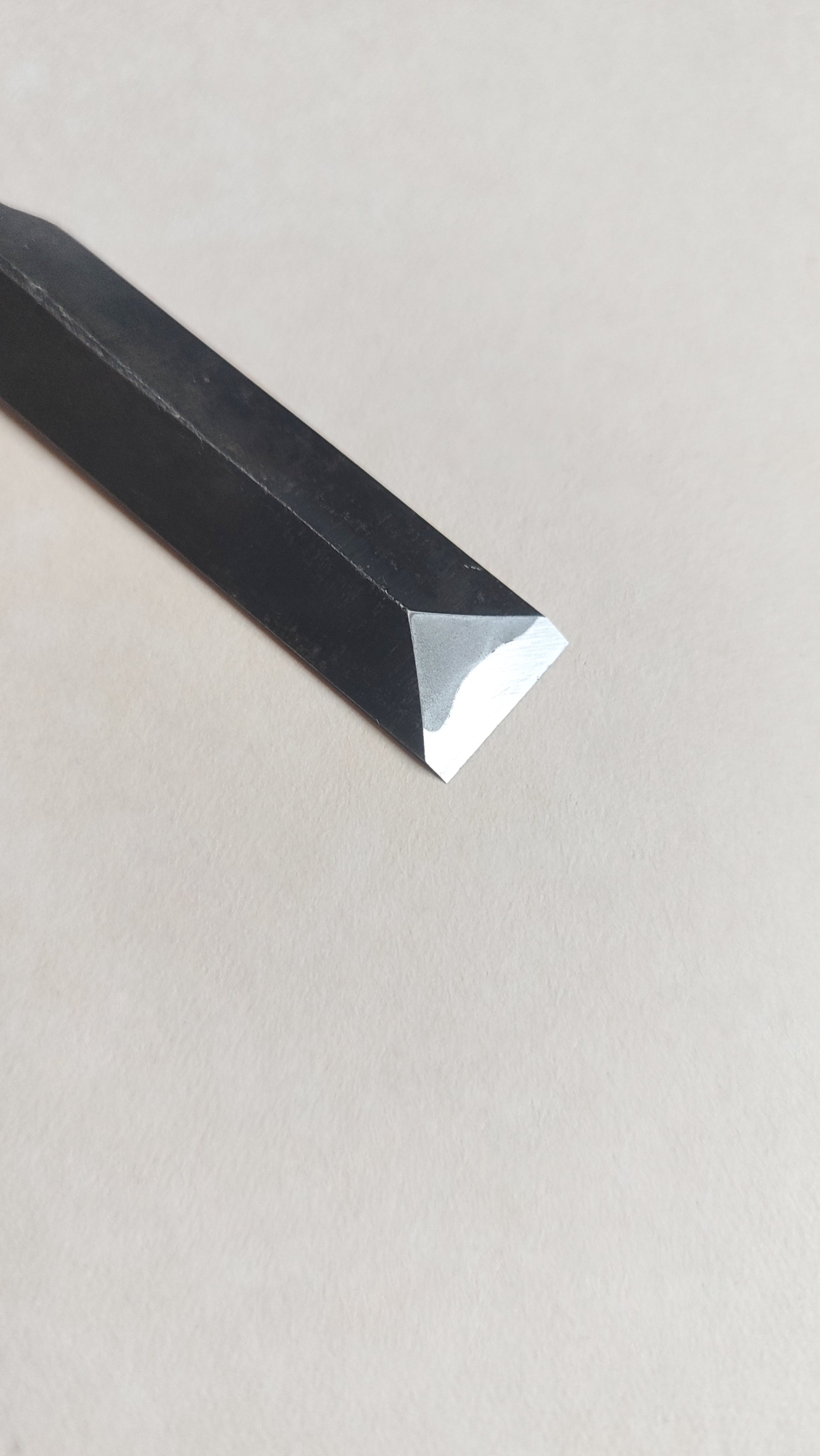 Ces ciseaux "Oire Nomi" sont courts. Ils sont très agréables pour les petits travaux d'ébénisterie. Celui-ci a la forme dîtes "Shinogi" (arrête) de forme pyramidale. Ce sont de trés bon ciseaux pour découvrir quelques choses de plus haut de gamme et pour approfondir l'usage de tels ciseaux.