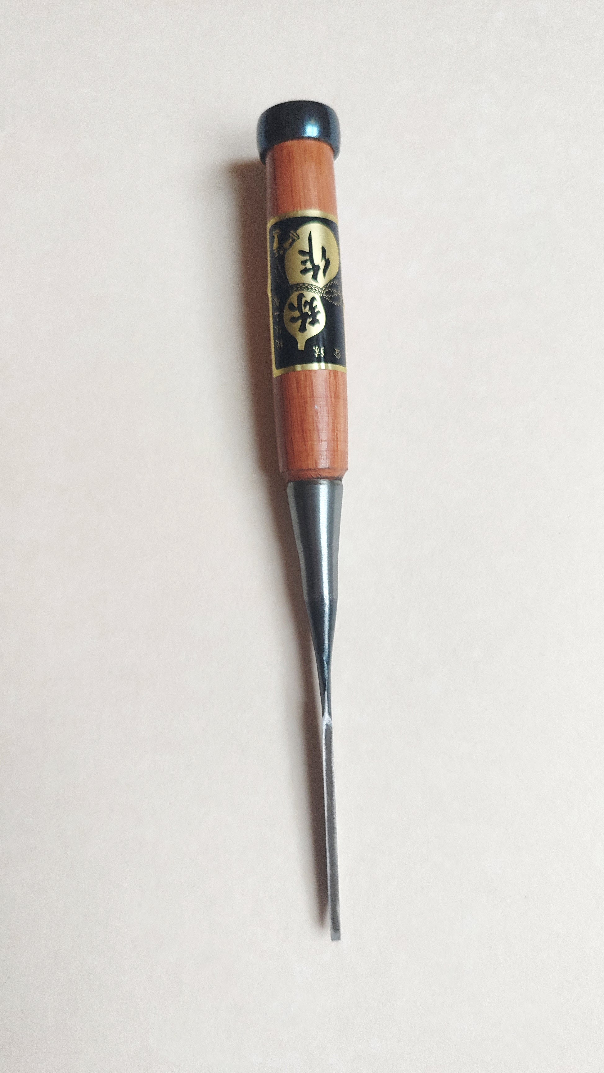 Ce ciseau japonais "Shinogi Nomi" aussi appelé "Umeki nomi" a une largeur de 3mm et une longueur de 220mm. Sa forme typique pyramidale permet de travailler dans les angles des queues d'arondes. C'est un outil premium et directement importé du Japon.