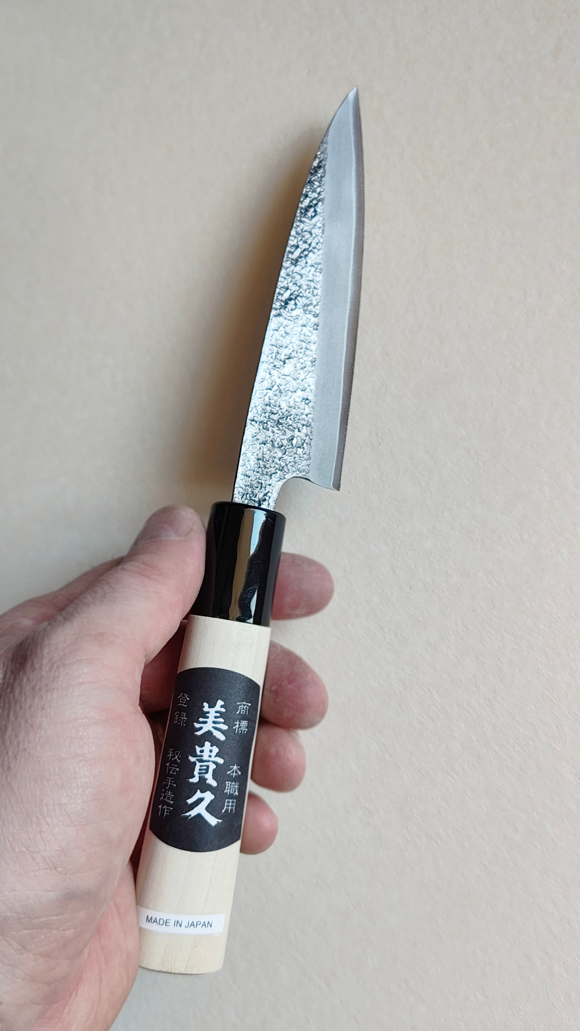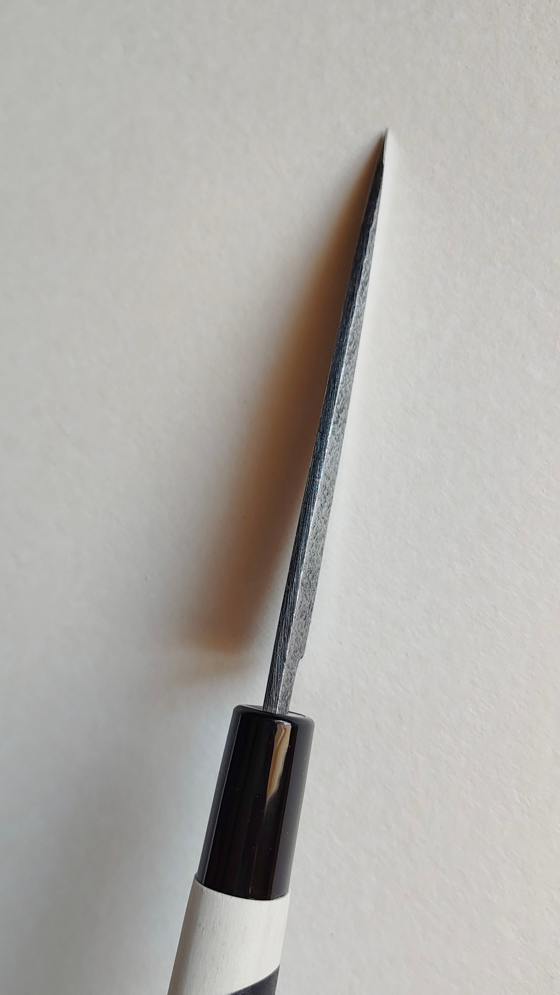C'est un couteau de la marque "Ikeuchi". qui provient ateliers "Ikeuchi Hamono" dans la ville de Miki berceau de l'outillage au Japon. La grande qualité de fabrication est trés rigoureuse dans les ateliers Ikeuchi fondés en 1953. Depuis cette date quatre génération de forgeron ce succèdent et perpétue la tradition des différents modèles des marques Mikihisa et Ikeuchi.