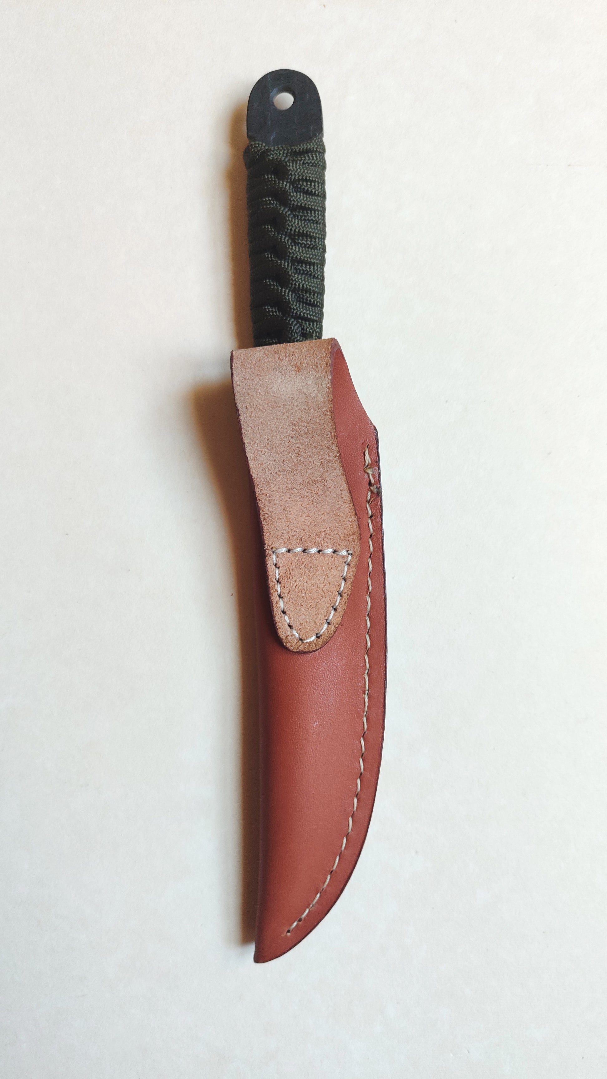 Sa finition est martelée avec un joli motif géométrique. Ce Kogatana est magnifiquement forgée. Ce type de couteau sera trés pratique en camping ou pour le bush-craft. Il est fourni dans un fourreau en cuir véritable.