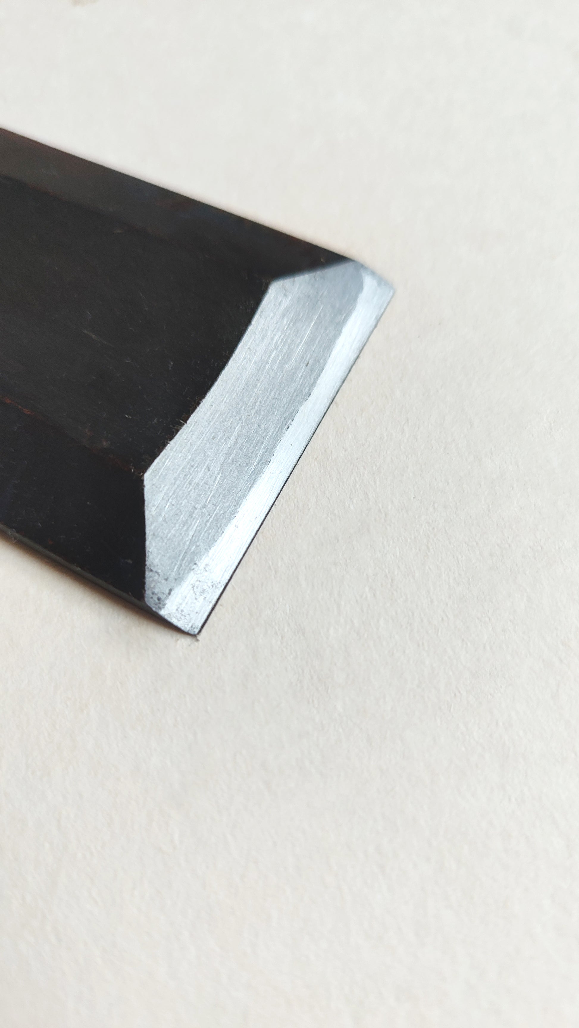 Comme tout ciseau neuf, un affûtage est à prévoir. Avant la période récente les forgerons n'affûtaient pas complètement les ciseaux. La virole n'est pas réglée. Oui, généralement les fabricants affûtent grossièrement leurs productions pour gagner du temps. Au Japon c'est toujours à l'acquéreur de l'outil de finaliser et d'adapter l'outil à son propre usage, c'est une philosophie de l'outil...