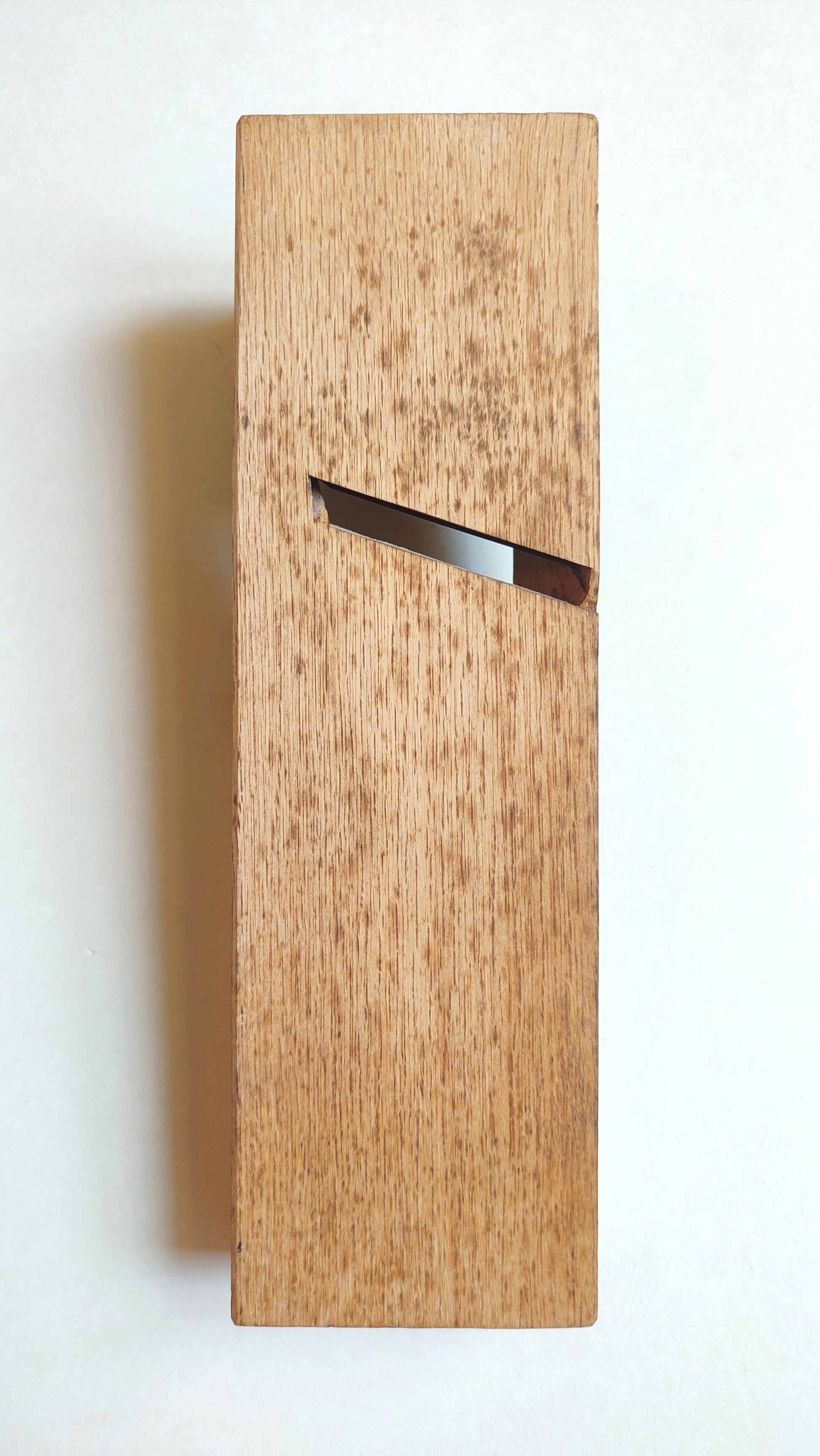 Ce rabot d'angle japonais appelé "Kiwa kanna" a le fer et la couche du fer qui sont biseautés de sorte que le fer se découvre sur le côté. Sa fonction est de pouvoir raboter dans un angle. Ce "Kiwa Kanna" a une lame de 60mm de large (extra large pour un kiwa). Il est de la marque "Sukesada". C'est une pièce rare, surtout dans cette largeur. Il est directement importé du Japon.