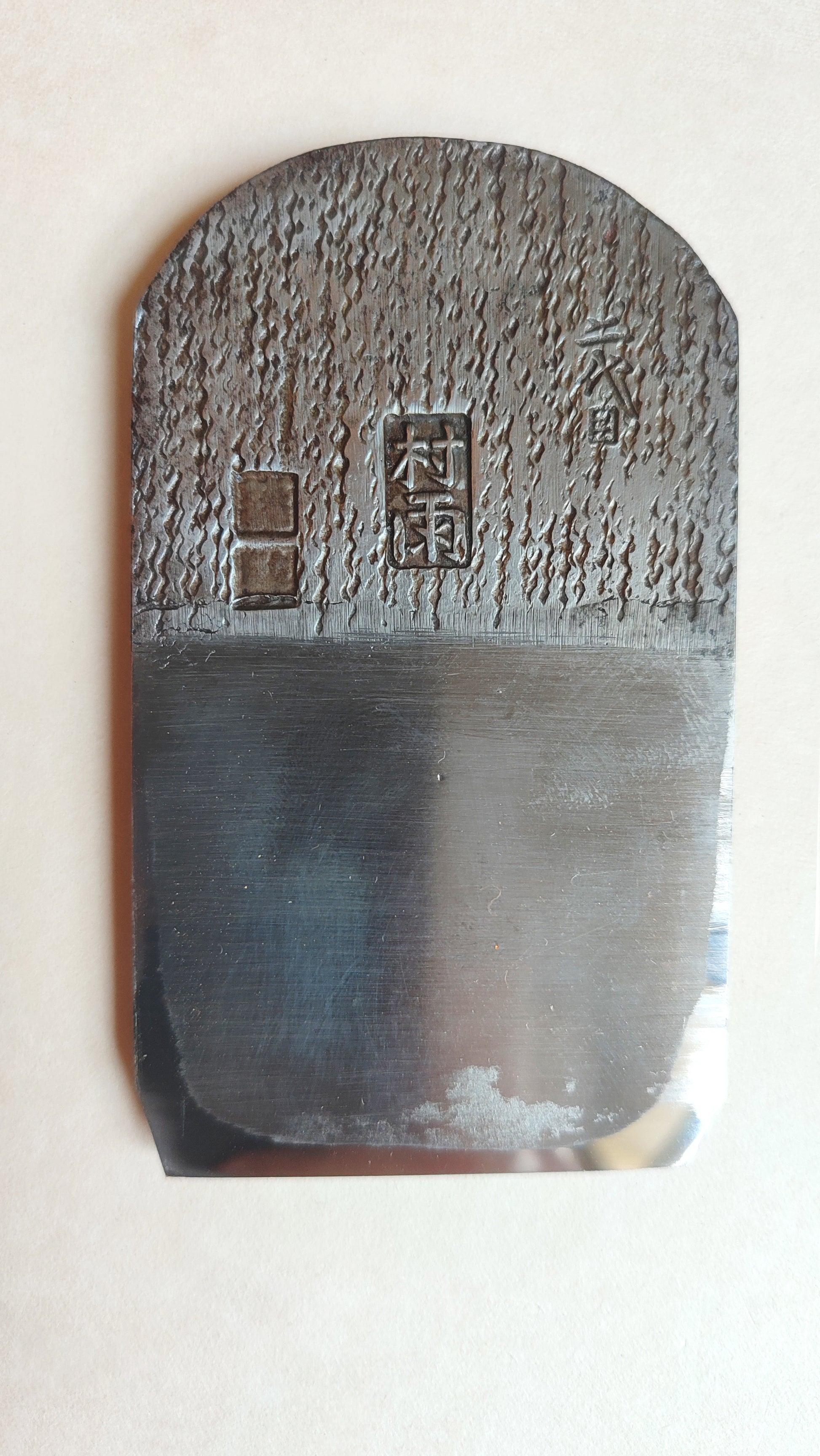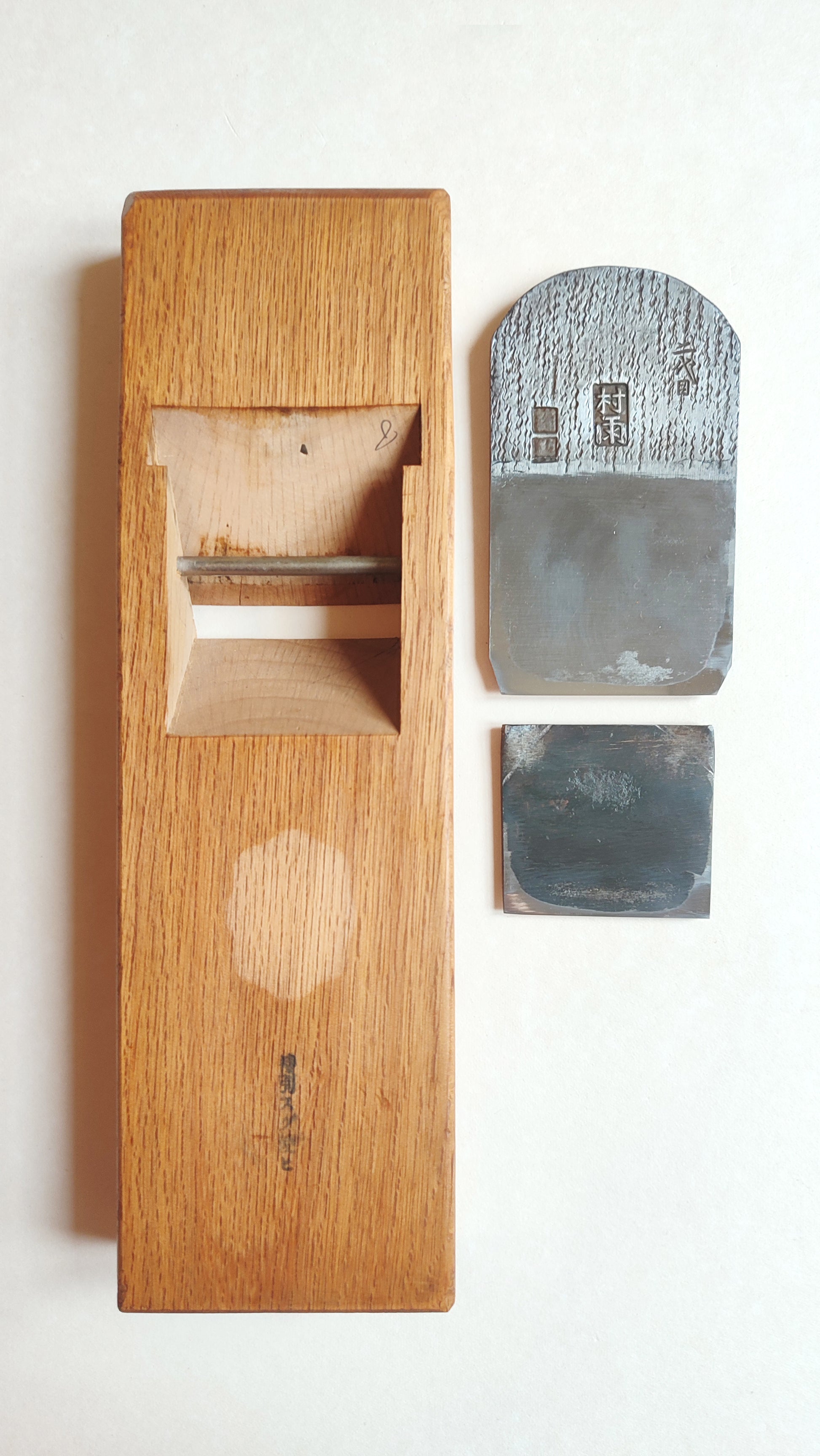 Le Daï (bloc en chêne blanc japonais) est massif et en parfait état, la semelle est parfaite, elle est bien droite. Le Daï mesure: longueur 273mm, largeur 82mm, hauteur 36mm. Le fer est en acier hautement carboné bi-couche. Le contre-fer est également laminé. Il est tranchant, je l'ai affûté jusqu'au grain 6000. C'est le rabot parfait pour commencer à utiliser les kanna.