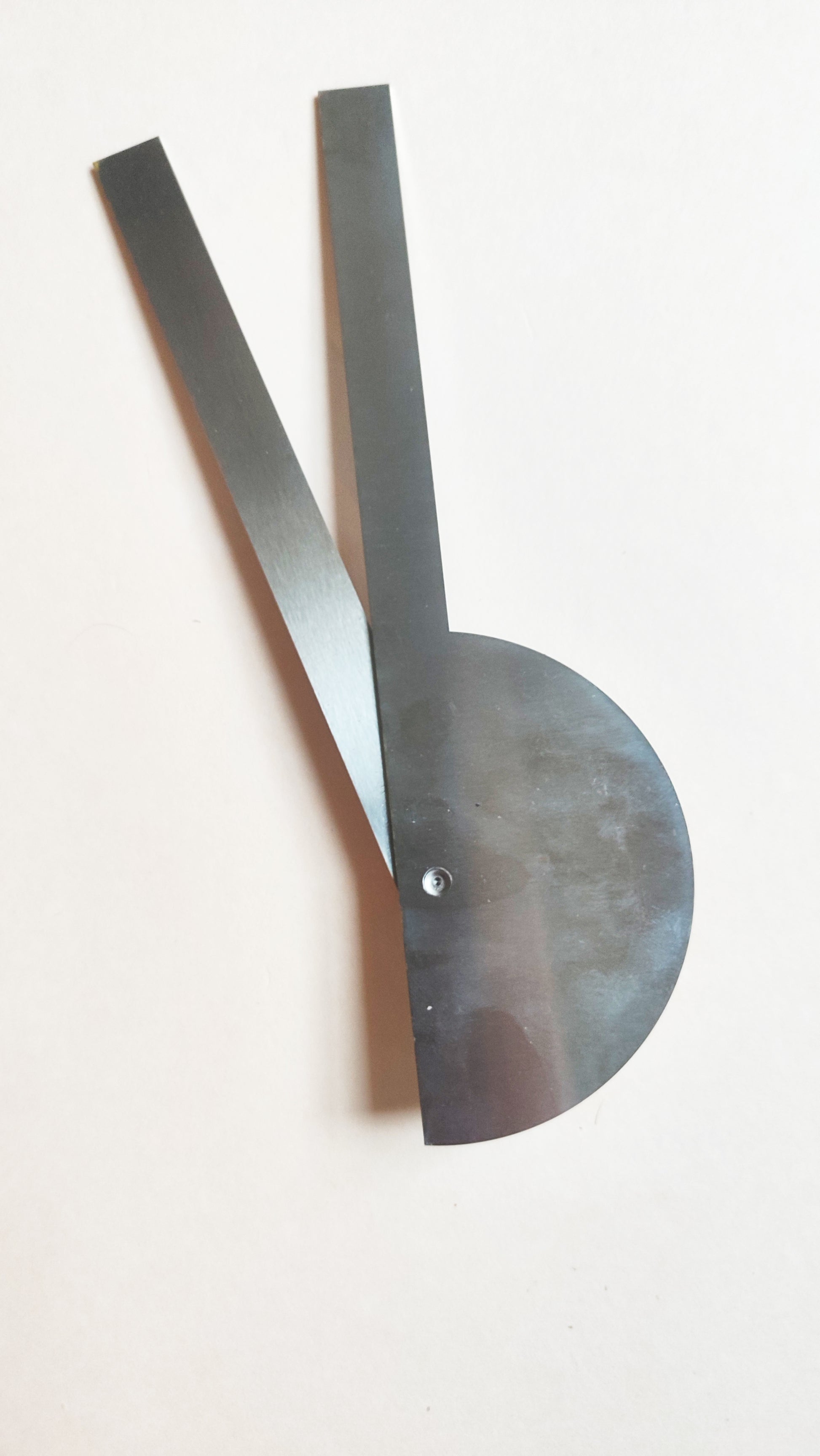 Ce rapporteur d'angle japonais de la marque Shinwa a une graduation de 10cm de long. Le système de serrage est trés simple. Il se règle à l'aide d'une petite simple vis.